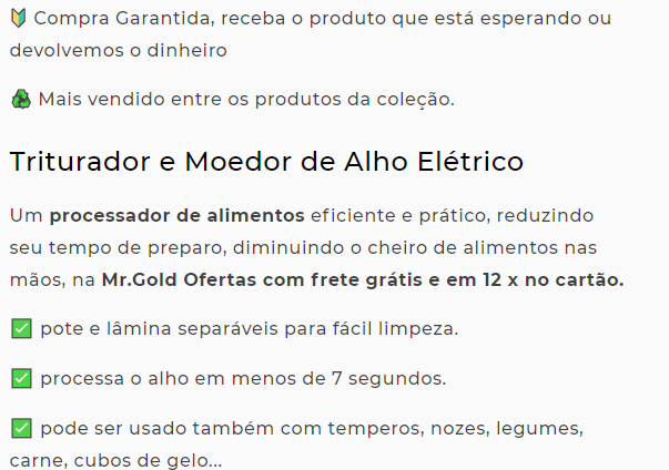 CARACTERÍSTICAS 1: Espremedor de Alho Elétrico