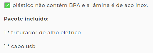 CARACTERÍSTICAS 2: Moedor de alho sem fio